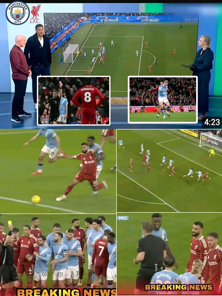 The referee blew his whistle and awarded a free kick. Guehi was booked. Yellow card. Play stopped as VAR checked the incident. The stadium waited. Replays were shown. From every angle, it looked like Salah had been denied a clear path to goal. For Liverpool fans, it felt obvious. For them, it was denial of a goalscoring opportunity, clear and simple.