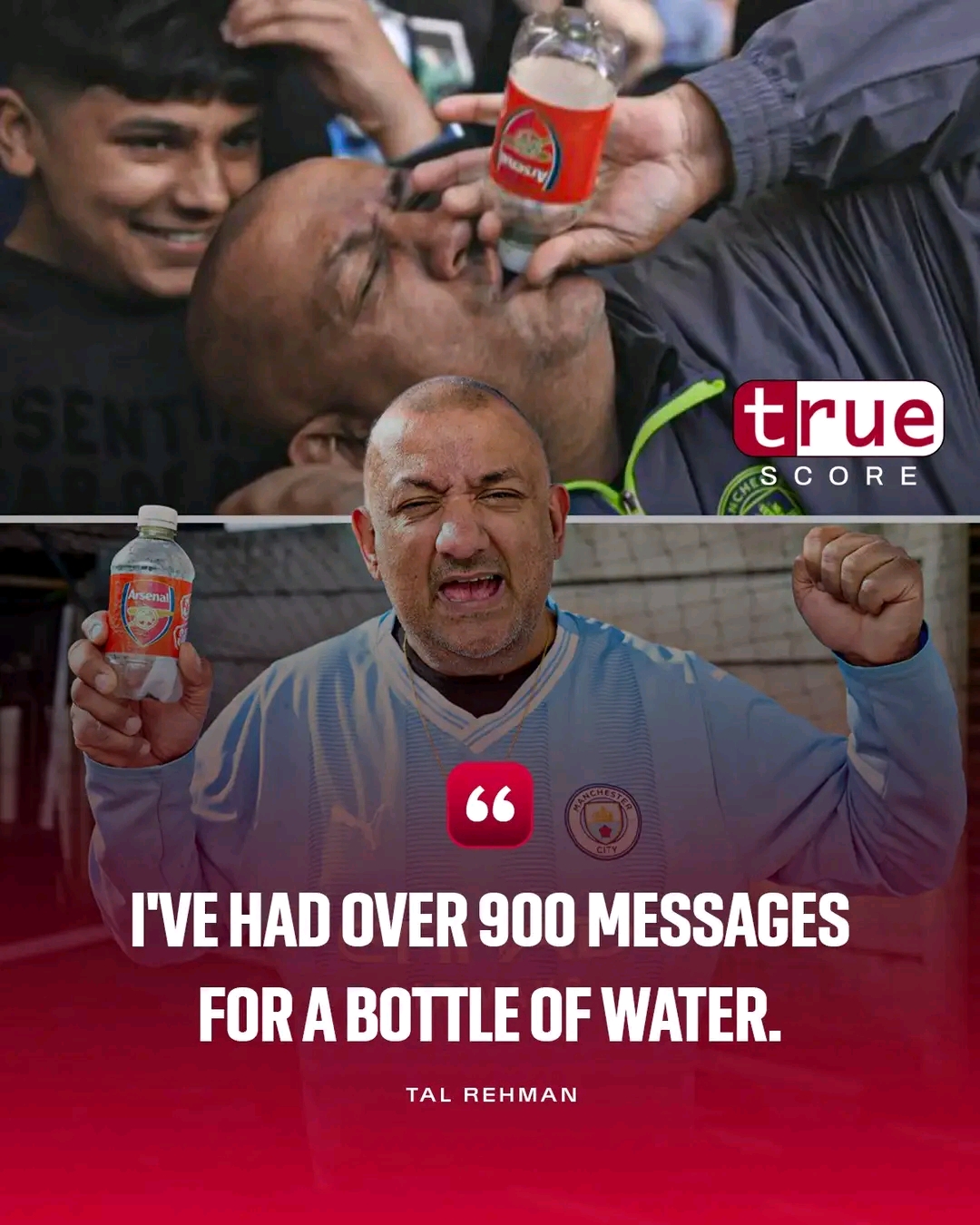 tal explained that he got the bottle the previous year in a very simple and human way during a match involving Arsenal he and his son were sitting near the area where the away team staff were located at the Etihad Stadium and his son felt thirsty like any young fan would during a long intense match