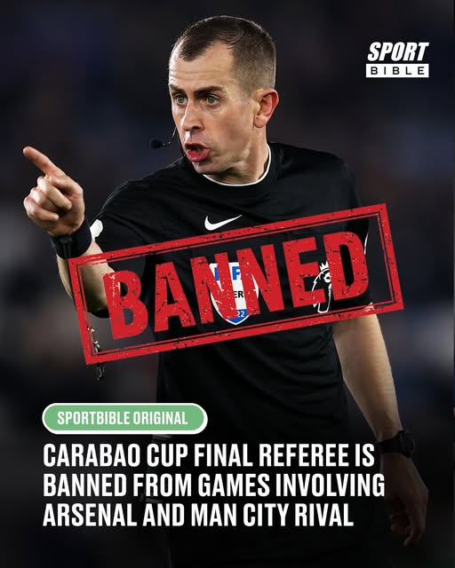 Carabao Cup final referee is banned from officiating games involving Arsenal and Man City rival