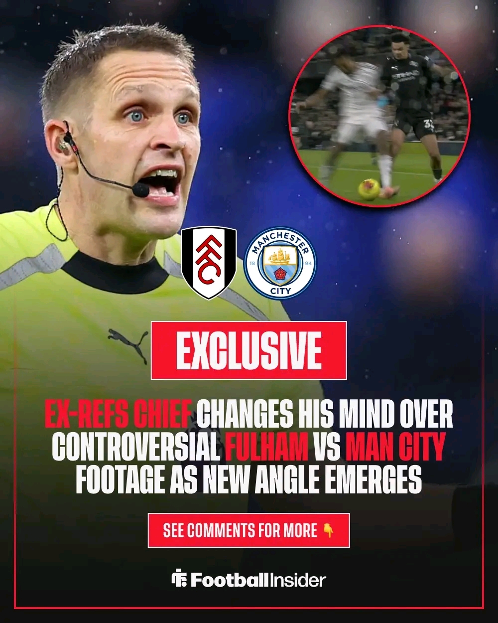 But football is a game of angles, a game where one new camera view can change the entire story of an incident. Hours later, a new angle emerged, a reverse angle that showed something completely different, something that flipped the entire incident on its head. Keith Hackett watched it again and again, analysed it like a detective studying evidence in a big case, and his conclusion changed completely. He realised that the foul was actually from the Fulham player himself. The new footage showed Kusi-Asare stepping across O’Reilly carelessly, initiating the contact, causing the collision. It was the Fulham man who committed the offence, not the City defender. Suddenly, everything changed. Fulham fans who had been shouting for justice were now forced to confront a truth that stung. City fans who had been nervous were now celebrating. The referee Craig Pawson was praised for getting it right in real time, without needing VAR to save him.