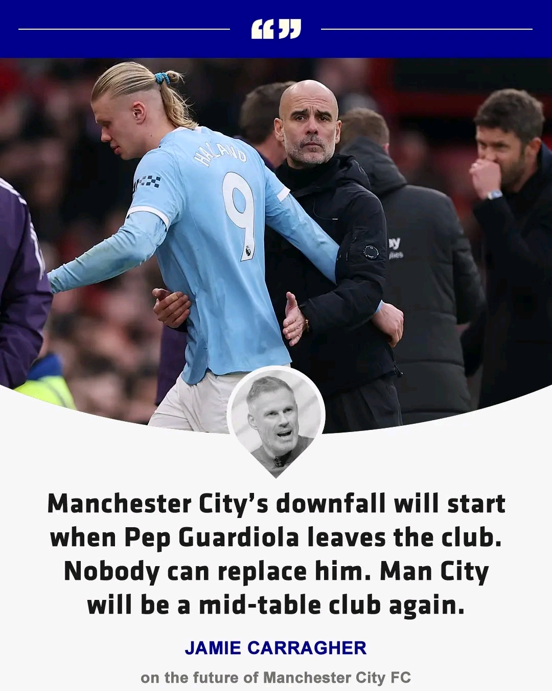 Now imagine Manchester City without Guardiola. Carragher believes the drop could be even sharper.
