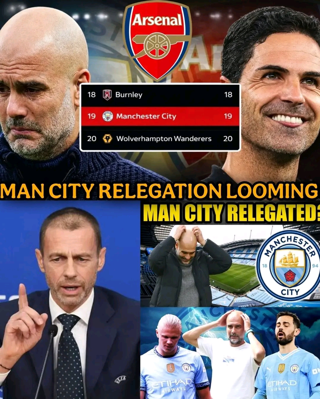 Jubilation currently ongoing at London Colney as thousands of Arsenal fans celebrate RELEGATION of Man City – as court delivers final judgement