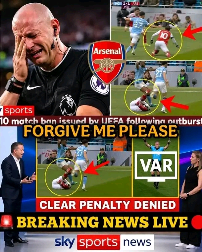 BREAKING NEWS has shaken the football world once again, and this time it is not about a last-minute goal or a transfer drama, but about something far more controversial and painful for fans, especially those who support Arsenal. What happened in the recent clash between Arsenal and Manchester City has now turned into a storm that refuses to calm down, and the centre of it all is the referee, a man who has now come out to beg for forgiveness after what many are calling one of the most shocking officiating performances of the season.