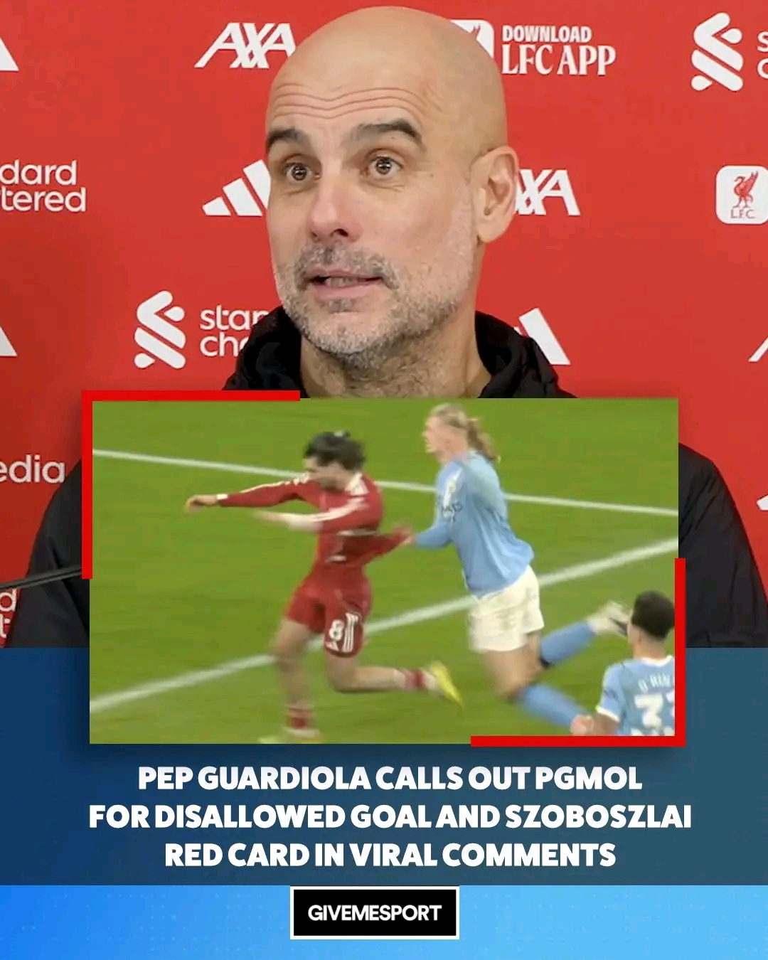 Szoboszlai pulled Haaland back outside the box, trying to stop the attack. Haaland then grabbed back, both players lost balance, and they tumbled to the ground as the ball slowly rolled into the net. City fans celebrated what they thought was the third goal. Liverpool players protested. The referee initially allowed play to continue.